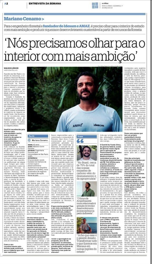 - Entrevista Jornal A Crítica: Relato de Mariano Cenamo sobre sua formação junto à Secretaria de Meio Ambiente e Virgilio Viana.