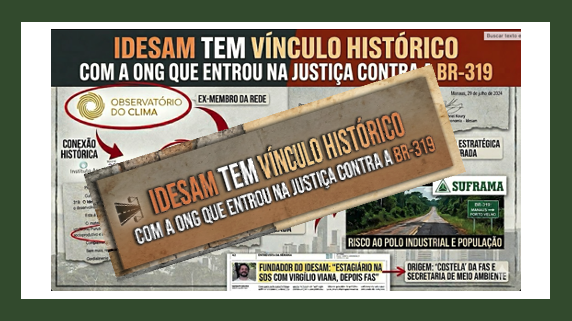 Durante anos, o Instituto de Conservação e Desenvolvimento Sustentável da Amazônia (IDESAM) figurou como uma das organizações-membro de destaque no Observatório do Clima (OC), a principal rede de ONGs que atuam na agenda climática no Brasil. Evidências visuais (anexo 1) mostram a logomarca do IDESAM estampada no site oficial do Observatório como parte do quadro de organizações parceiras. Essa parceria, contudo, entrou em rota de colisão com os interesses locais do Amazonas quando o Observatório do Clima intensificou ações jurídicas para impedir o reasfaltamento da BR-319 (Manaus-Porto Velho), alegando riscos de desmatamento desenfreado. Ação jurídica do passado, nem é a atual.