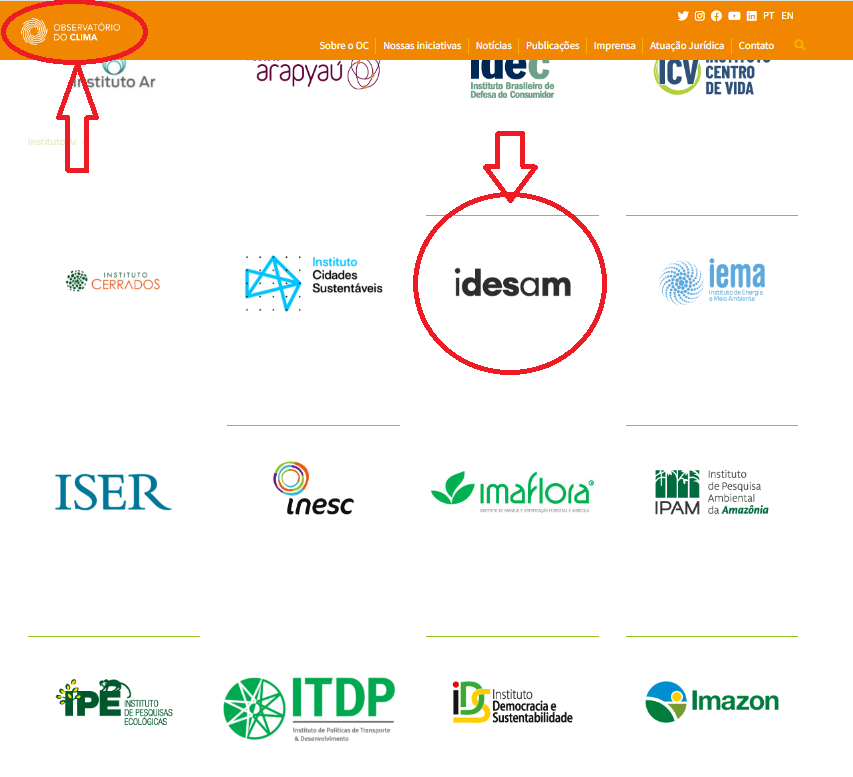 - Print 1 (Site OC): Logomarca do IDESAM presente no portal do Observatório do Clima.