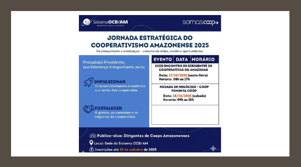 Read More🚀 Começa a contagem regressiva para a Jornada Estratégica do Cooperativismo Amazonense 2025!Três dias de imersão para transformar ideias em