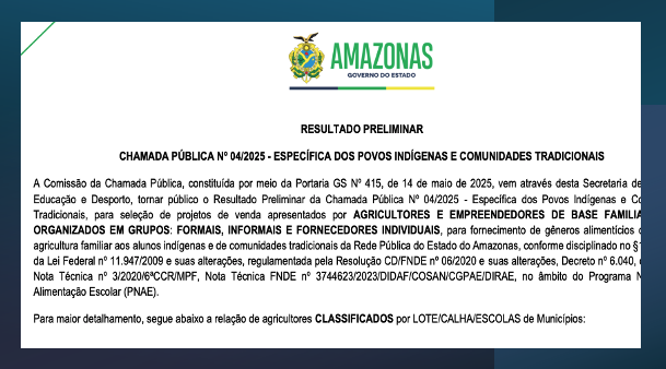 Opinião/Informação: A Comissão da 12ª Região Militar, responsável por avaliar as propostas da Chamada Pública da Agricultura Familiar, cometeu um