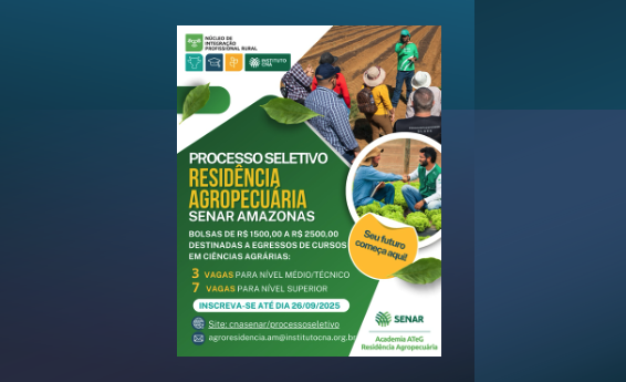 Read MoreInscrições Abertas! Residência Agropecuária – SENAR Amazonas 👩🏻🌾👨🏻🌾 O SENAR Amazonas, em parceria com o Instituto CNA, abre inscrições para