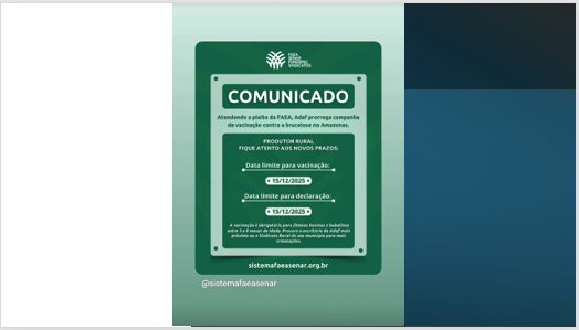 Atendendo a pleito da FAEA, ADAF prorroga campanha de vacinação contra a brucelose no Amazonas.